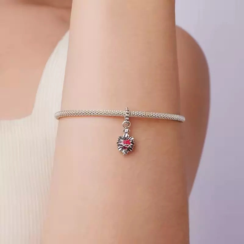 El Dije del Sagrado Corazón de Jesús está elaborado en Plata 925 auténtica, lo que garantiza una joya de brillo duradero que no se pela ni pierde su acabado con el uso. Su diseño cuidadosamente detallado y su confección de alta calidad lo convierten en una pieza hipoalergénica, cómoda y resistente, ideal para acompañar el uso diario en pulseras.