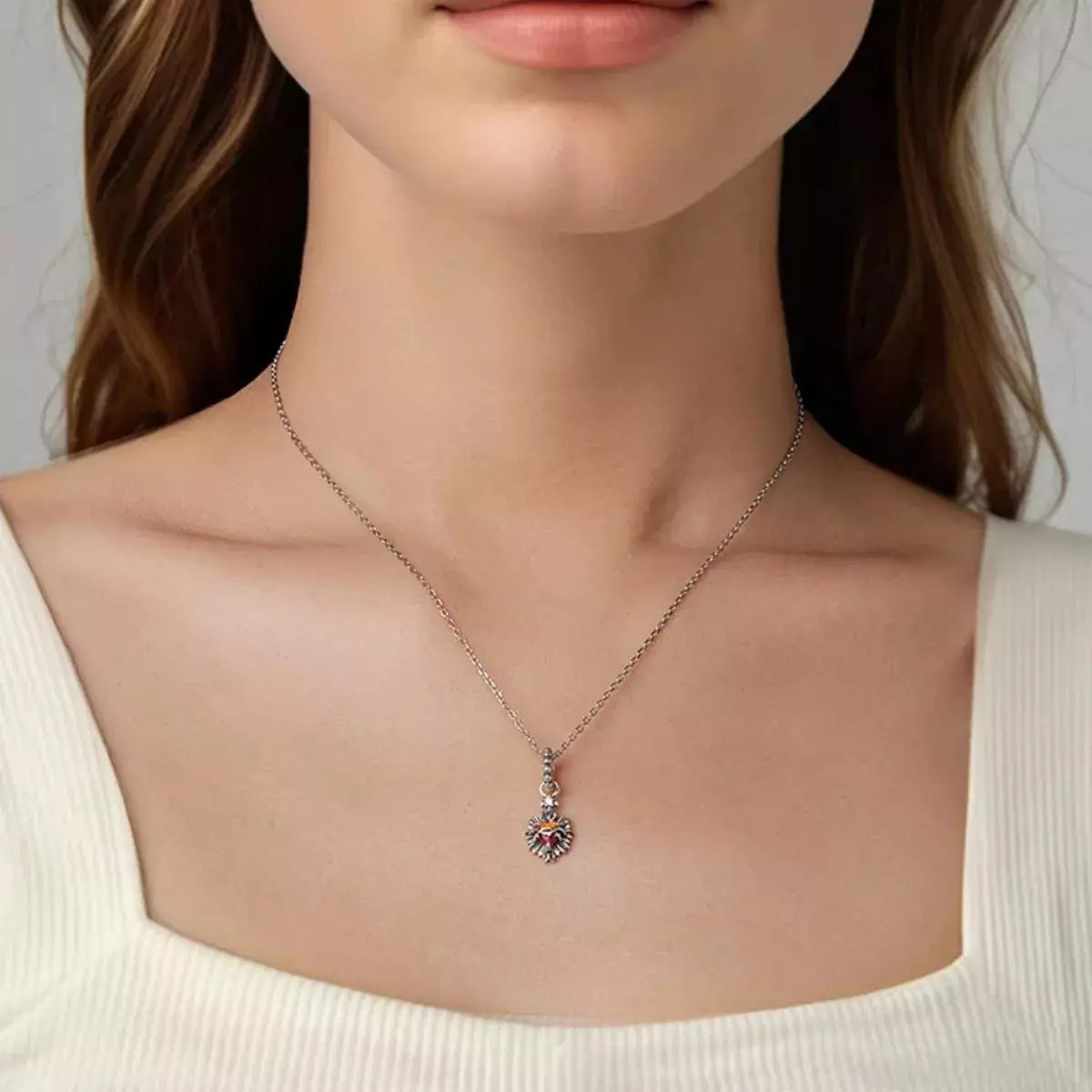 Portar el Sagrado Corazón de Jesús es llevar consigo el símbolo supremo del amor, la misericordia y la protección divina. Este dije une la nobleza de la plata con un profundo significado espiritual, representando una forma elegante y significativa de expresar la fe y la devoción.