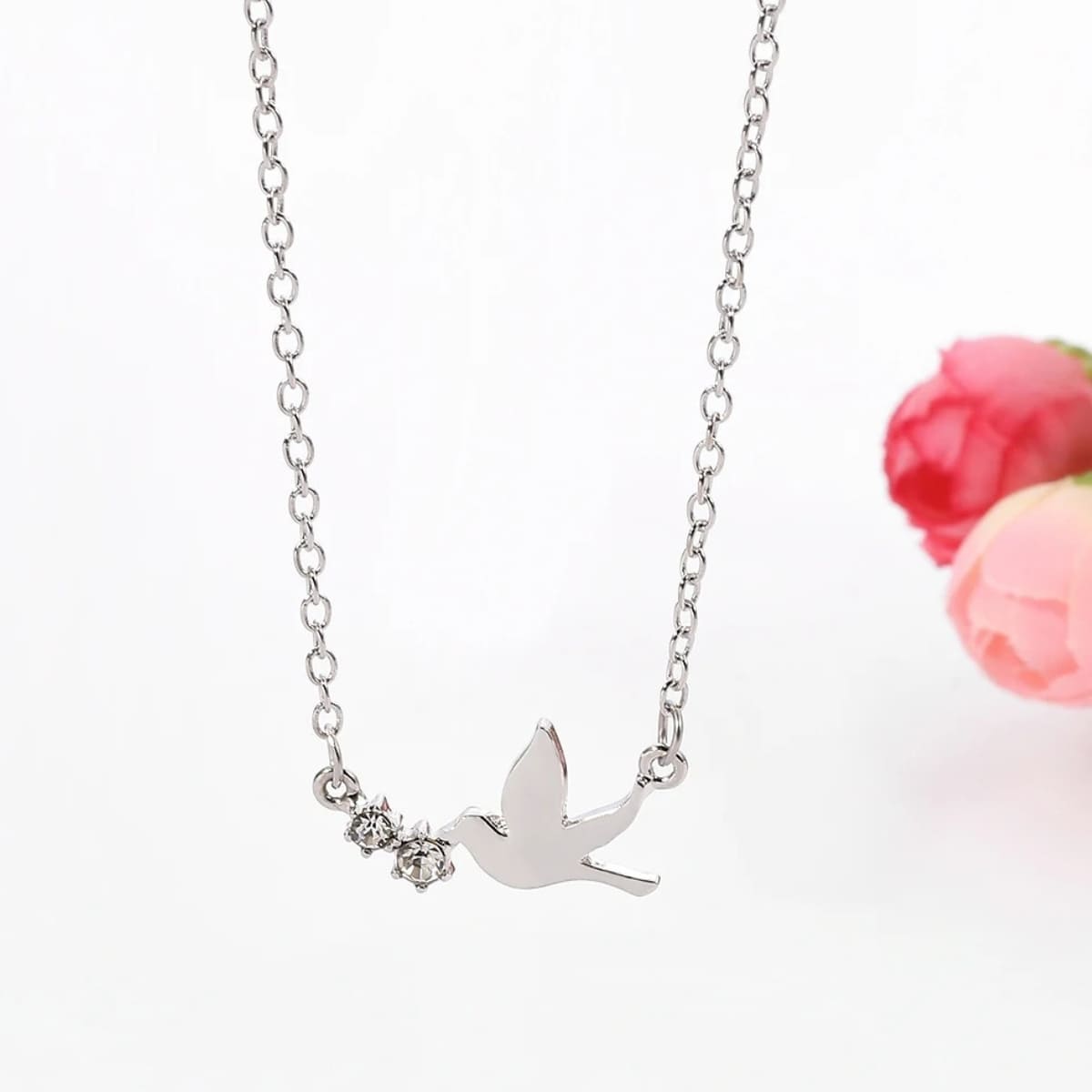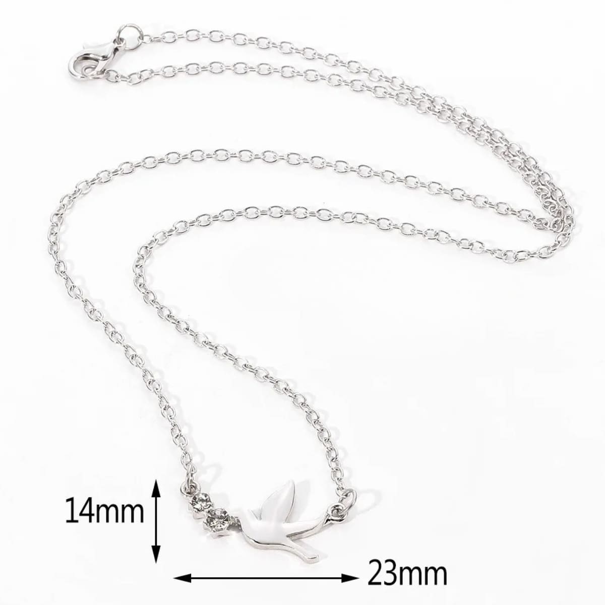 El collar con colgante del Divino Espíritu Santo, adornado con gotas de circonia, es un recordatorio diario de la fuerza que viene de lo alto y de la presencia constante de Dios en tu vida.