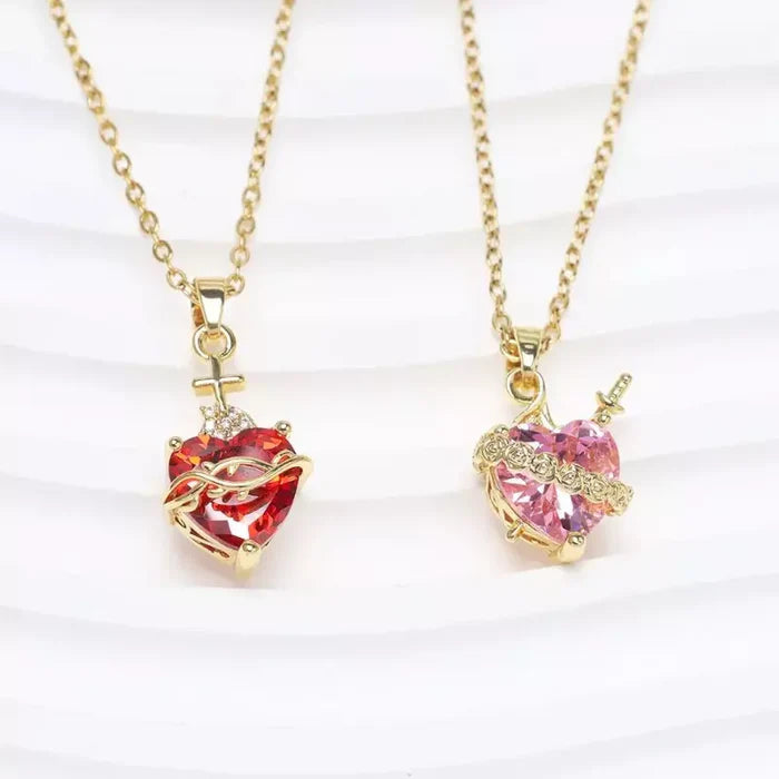 Una unión de amor y gracia para llevar en el pecho. Este kit de collares celebra la perfecta devoción a los Sagrados Corazones de Jesús y María, fuentes de amor puro y reparación. Cada colgante, con baño dorado y circonias roja y rosa, representa la entrega de Cristo y la intercesión de la Virgen. Úsalos juntos como símbolo del amor que nos salva y de la Madre que nos protege.