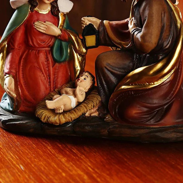 Revive el nacimiento de Jesús con esta delicada imagen de la Sagrada Familia. Finamente esculpida en resina, esta pieza transmite la belleza, humildad y luz del momento más sagrado del cristianismo. Ideal para bendecir tu hogar o regalar con fe y amor.