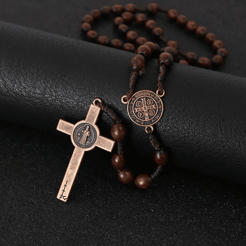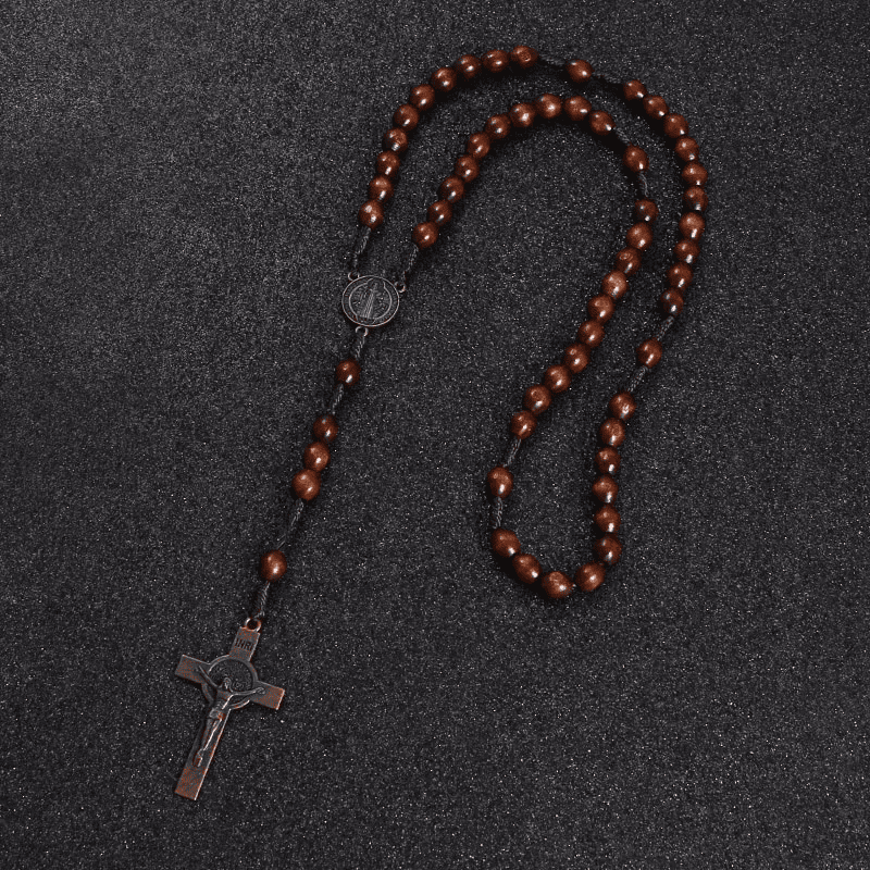 Con cuentas de 9 × 7 mm y detalles en bronce envejecido, este rosario es ideal para momentos de reflexión y devoción, aportando un toque cálido y auténtico.