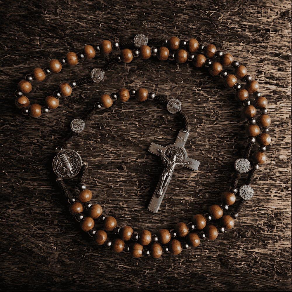 El Rosario Escudo Celestial es una pieza artesanal que une la belleza natural de la madera con la profundidad de la espiritualidad cristiana. Cada cuenta representa una oración, haciendo de este rosario un recordatorio constante de devoción y vínculo divino.