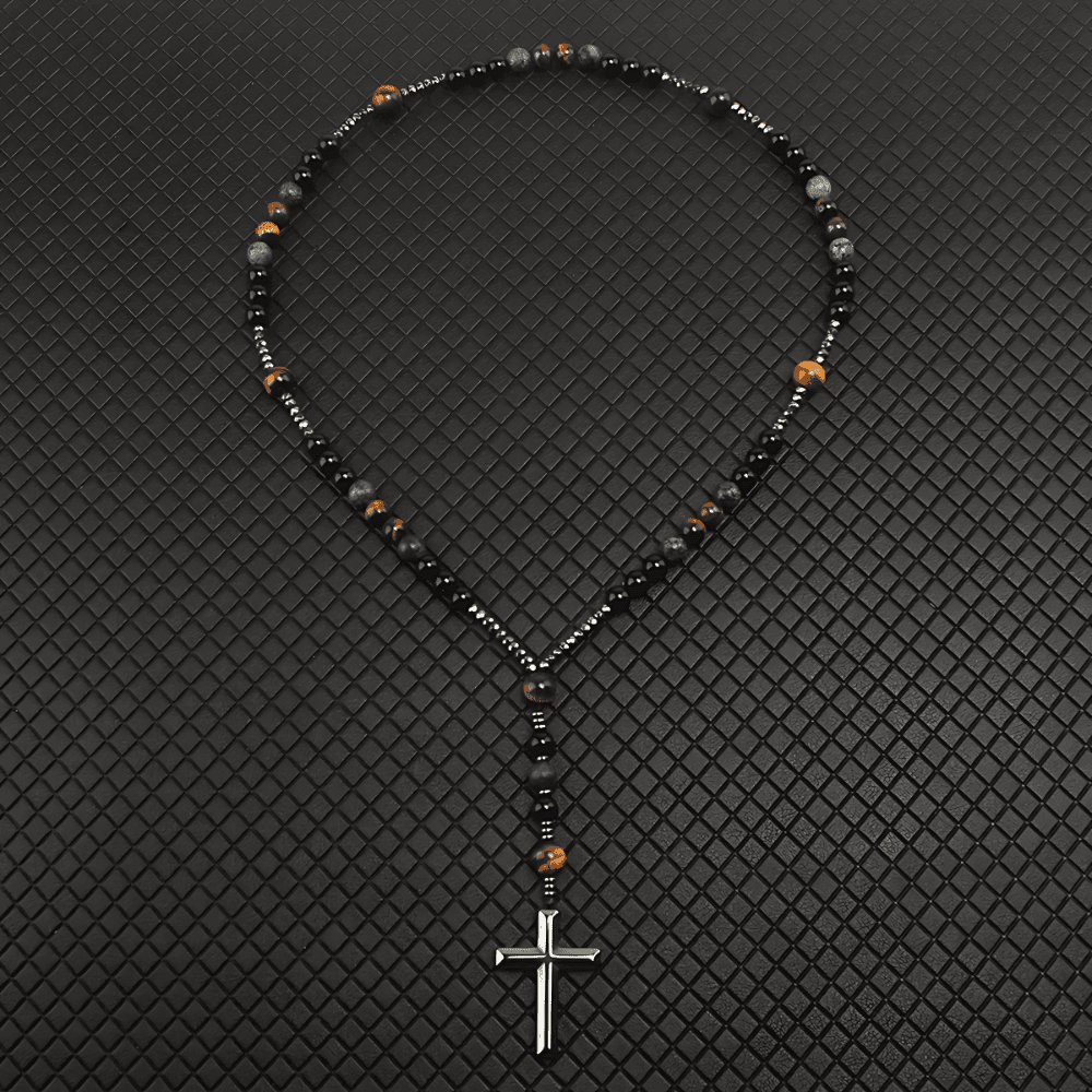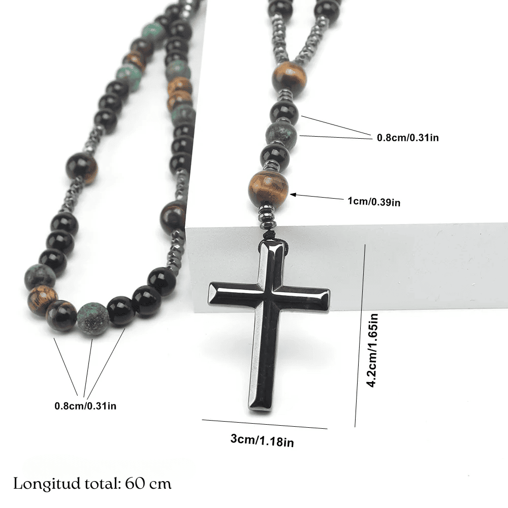 El Rosario Tierra Sagrada une la belleza natural de las piedras con la profundidad de la fe viva. Con cuentas de turquesa y ojo de tigre, ofrece equilibrio, protección y una conexión profunda con las energías de la tierra.